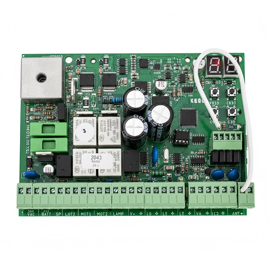 - Bemenetek 2 pár fotocellához különböző funkciókkal, például 2 mp. inverzió, leállítás vagy megfordítás, nyitó gomb, záró gomb, gyalogos, forgó gomb (nyitás és zárás)